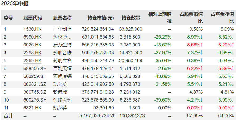 整体来看,创新药行业的持仓个股数量进一步增加,而多只医疗个股、中药个股已不见身影。